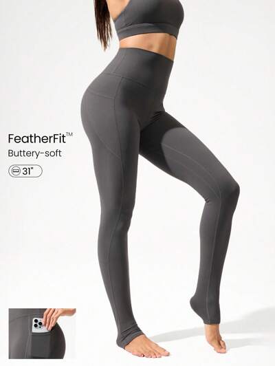 31" Legging FeatherFit™ Sky High com Cintura Super Alta, Bolsos Laterais, Ioga de Baixo Impacto, Pilates, Uso Diário Casual