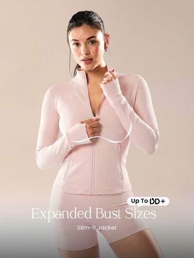 FeatherFit™ Para DD+ Jaqueta de Manga Longa com Zíper, Bolsos Seguros, Desempenho Slim-It Streamline, Baixo Impacto, Yoga Diária, Outono
