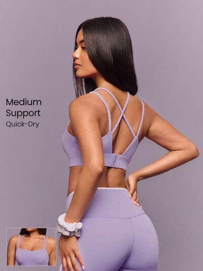 FeatherFit™ Sutiã Esportivo Longline com Alça Cruzada, Suporte Leve, Ioga, Academia, Uso Diário