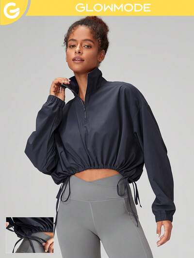 Jaqueta Featherfit™ Cropped Com Zíper E Bainha Curva
