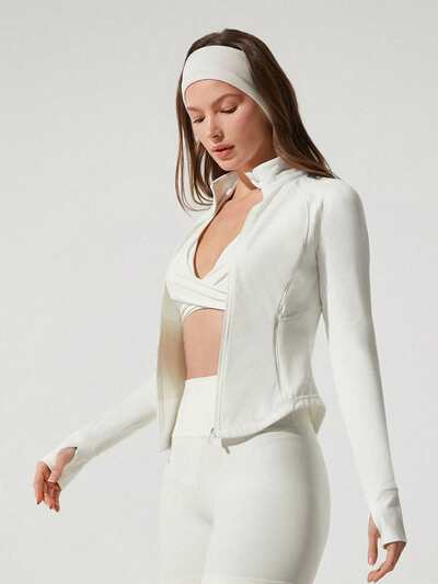 Jaqueta Ativa de Mangas Longas com Zíper, Bolsos e Aberturas para os Polegares, Ajuste Slim, para Ioga de Baixo Impacto, Pilates, Estúdio e Uso Diário da FeatherFit™