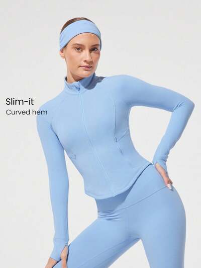 FeatherFit™ Slim-It Streamline Performance Secure Pockets Zip Up Long Sleeve Jacket Low Impact Yoga Pilates Daily Spring Summer