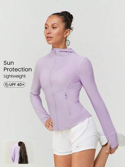 Lightweight Cool Feel Sun-Proof Mesh Adjustable Hem Running Portable Jacket With Back Pocket Thumbholes Running Workout Training Gym Spring Summer
