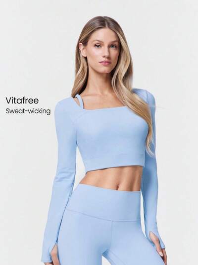 Slim Fit Warm Crop Length Long-Sleeve Top With Thumbholes Removable Padding Yoga Pilates Daily Active Wear Sweat-Wicking