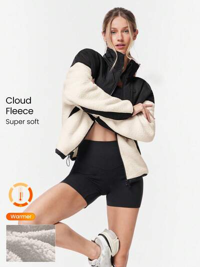 Cloud Fleece Double The Glow Two-Tone Waist-Length Drawstring Hem Zip-Up Jacket With Side Zipper Pockets Daily Casual Wear Fall Winter